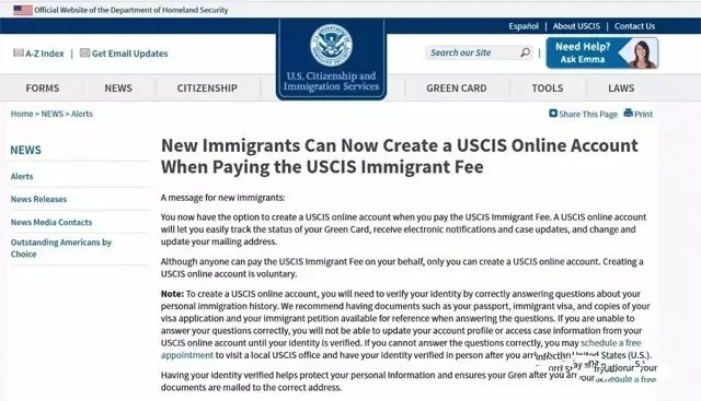 2017年2月份的時(shí)候,美國移民局(USCIS)發(fā)布消息:新移民可在移民局USCIS官網(wǎng)創(chuàng)建賬戶,支付移民費(fèi)。