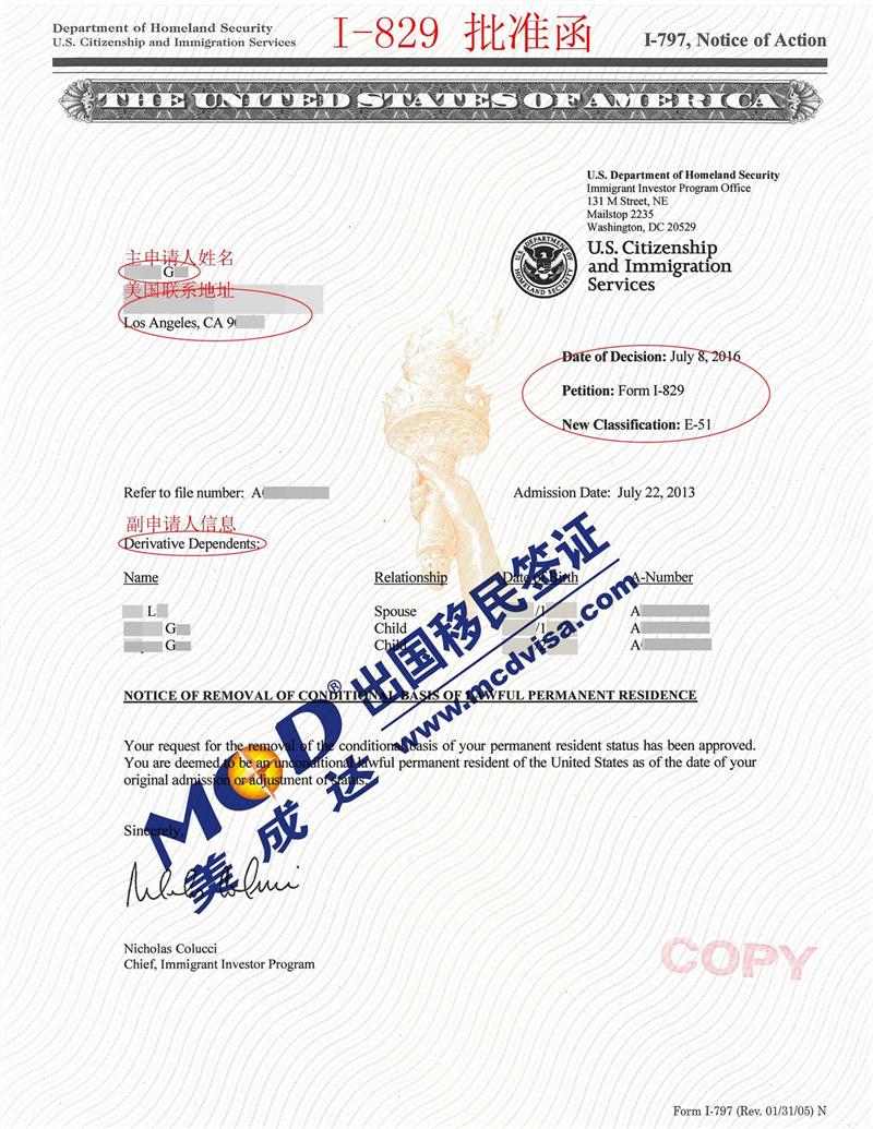 廣東美成達移民公司又一客戶成功獲批美國I-829永久綠卡!恭喜獲得I-829的成功客戶G先生!